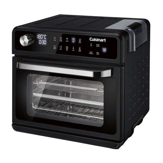 Cuisinart collection of Airfryer Steam Oven offer a variety of features tailored to your cooking needs. Steam, Steam Assist, Air Fry, Turbo Roast, Grill, Bake Steam, Super Steam, Convection Bake, Toast, Warm / Touch screen control panel with 15 buttons, including Time / Temperature Knob, Self- Clean, Dual Cook, Start / Cancel / Include 20 auto presets (recipes) Select from the built-in menu for 20 programs including roasts, grilled fish, vegetables, lasagna, air fried snacks and pizza. / Pre-painted black steel housing and stainless-steel interior. Savour the good life with Cuisinart and prepare delicious meals for the whole family with our quality air fryers Steam Oven.